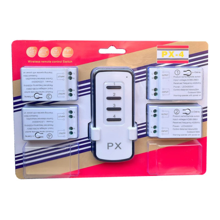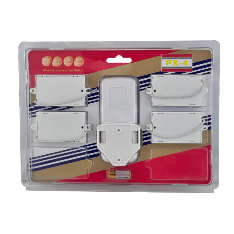 ریموت روشنایی چهار کانال مجزا، بدون نیاز به سیم کشی ، با برد بیرونی ۱۵۰ متر و داخلی 25 متر می باشد. ریموت نیاز به یک باتری ۱۲ ولت داره که تو خود جعبه هست و فقط برای ریموت استفاده میشود و رسیورها نیازی به ریموت ندارند،